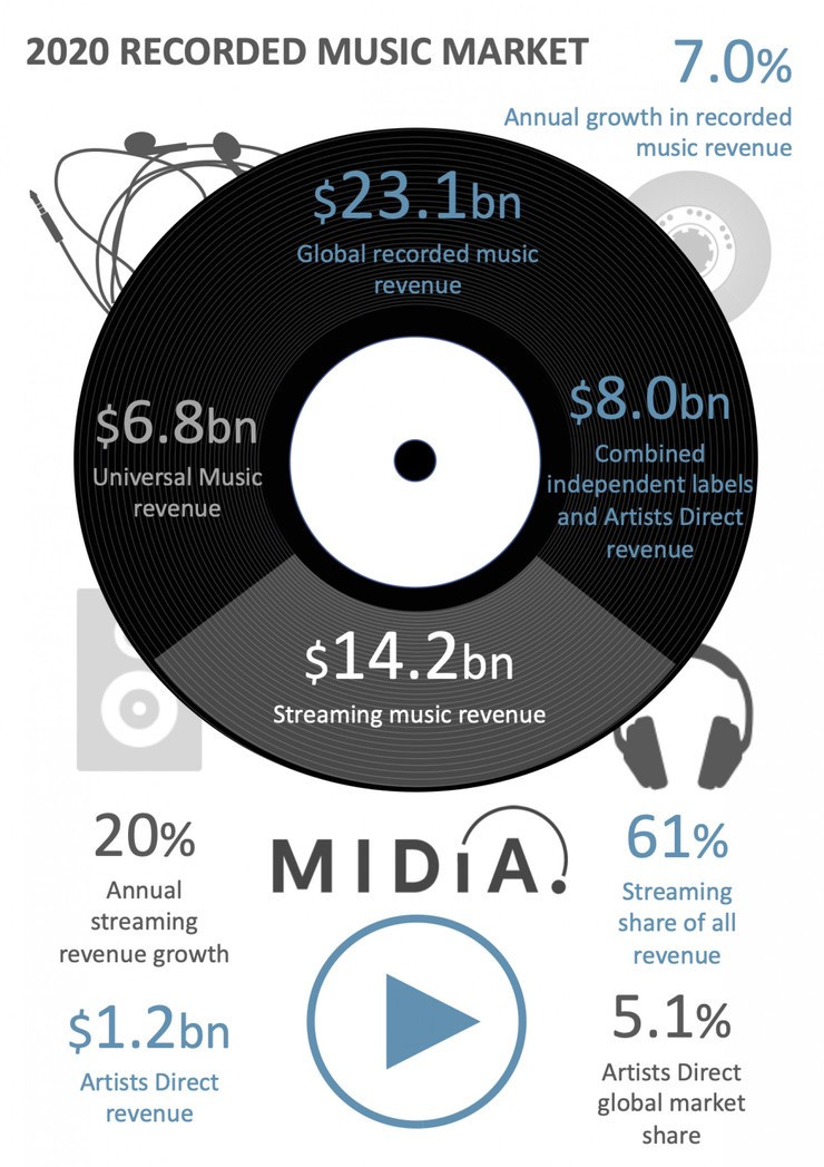 Recorded music revenues hit $23.1 billion in 2020, with artists direct the winners — again — www.midiaresearch.com